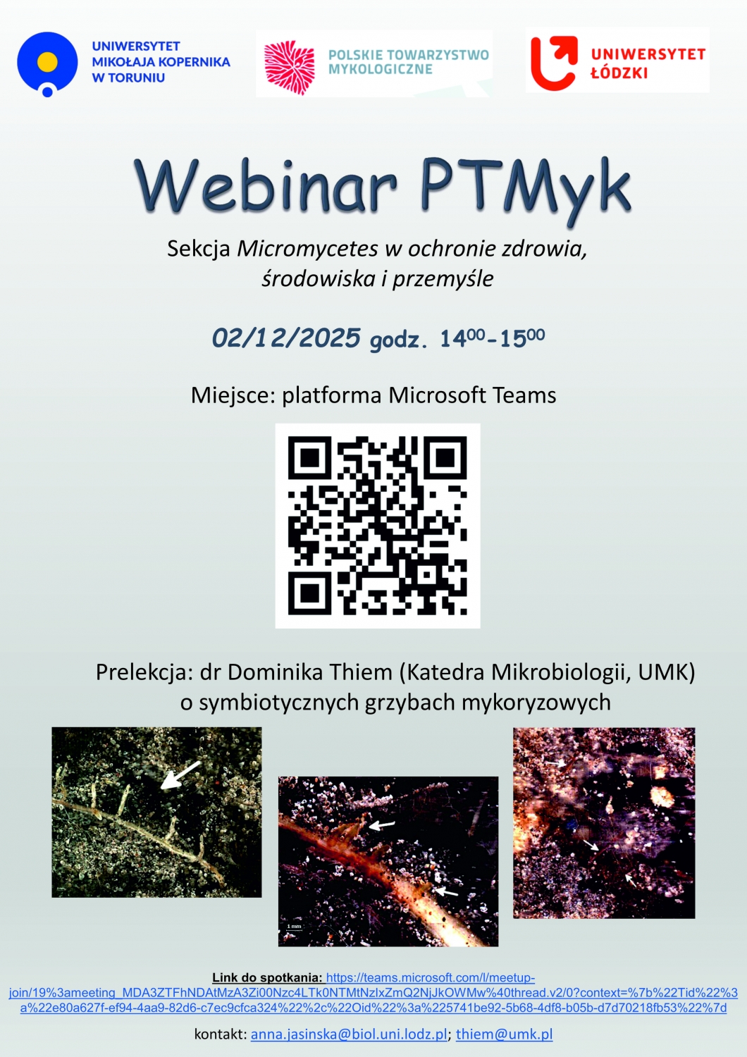 Polskiego Towarzystwa Mykologicznego serdecznie zaprasza Członków sekcji i innych zainteresowanych na spotkanie połączone z prelekcją na temat symbiotycznych grzybów mykoryzowych.