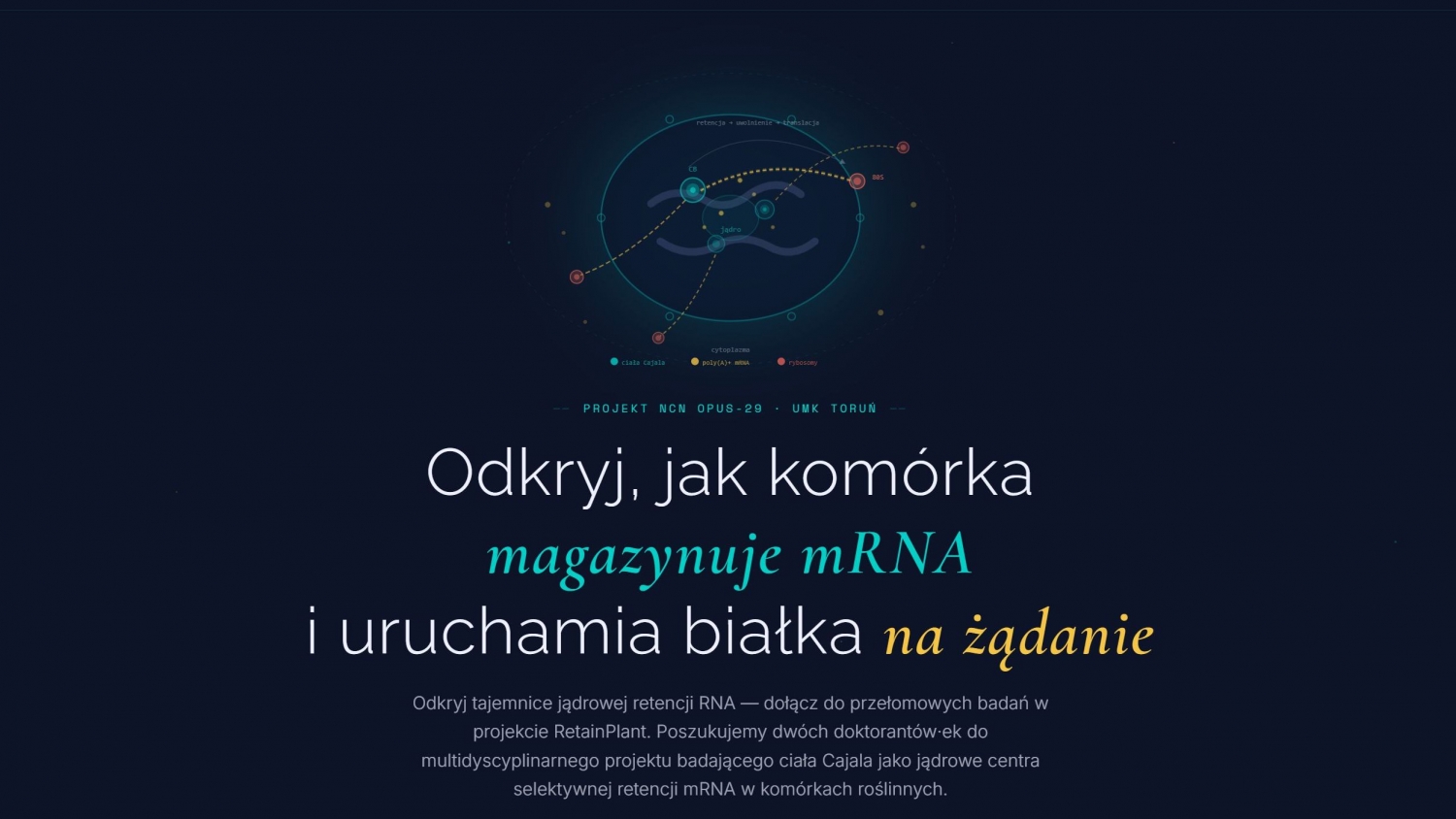 Projekt bada, jak jądrowe kondensaty (ciała Cajala) magazynują i pod kontrolą uwalniają mRNA do cytoplazmy w mikrosporocytach modrzewia podczas profazy mejotycznej. Twoim zadaniem będzie budowa atlasu transkryptów zatrzymywanych w ciałach Cajala oraz identyfikacja białkowych „gatekeeperów”, które blokują eksport mRNA.